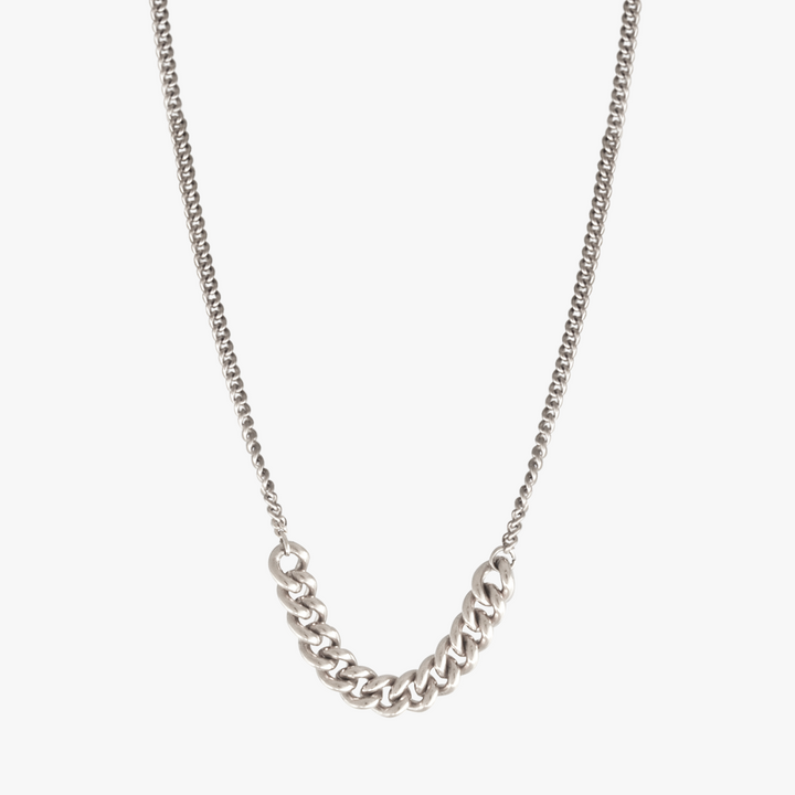 Collar formada con 2 medidas de cadena de latón bañada en Plata.Talla: ajustable al cuello de 35,5 a 47,5 cm. Peso Aprox. : 20,2 gr.