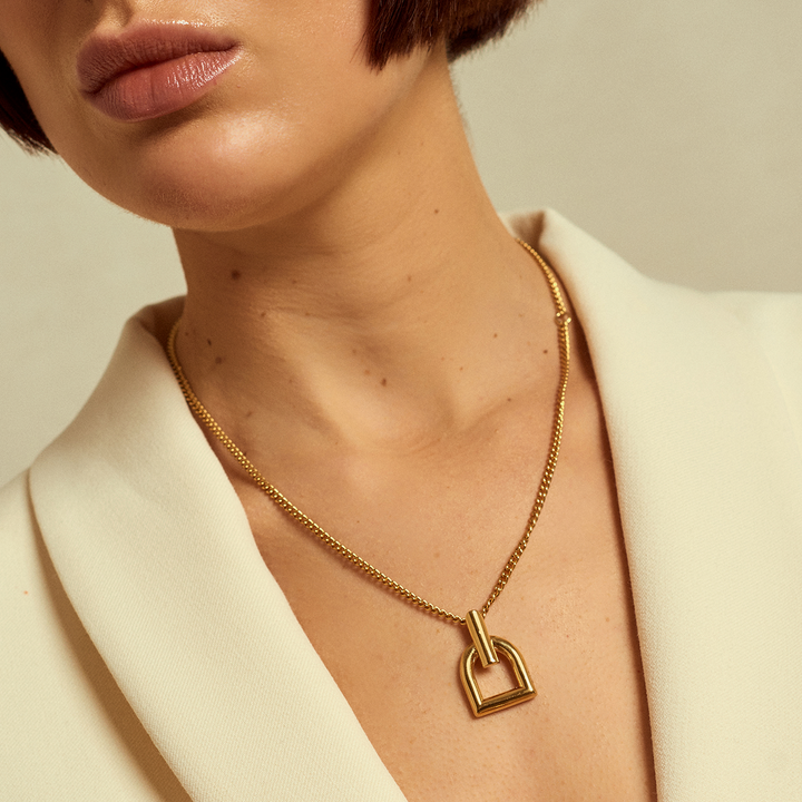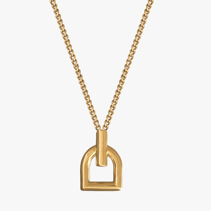 Collar bañado en Oro. Talla: ajustable al cuello de 36,5 a 53 cm aprox, con colgante de 3 x 2,3 cm. Peso: 15,5 gr.