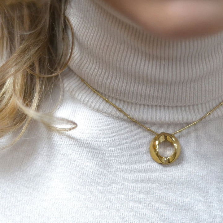 Los colgantes son tendencia, por eso traemos este diseño de largo medio para quienes buscan una nueva pieza para su colección. La joya está producida con una aleación de metales y latón y bañada en oro. También disponible en plata. Diseño exclusivo de CXC, elaborado de manera artesanal en España.