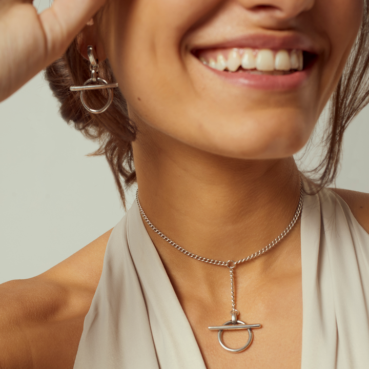 Collar bañado en Plata.Talla: ajustable al cuello de 33 , 38,5, 43,5 y 45 cm más un largo de cadena con abalorio incluido de 5,5 cm.
