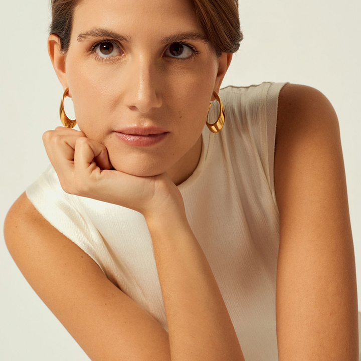 Pendientes bañados en Oro. Largo desde el agujero 3,5 cm. Peso Aprox: 6,8 gr.