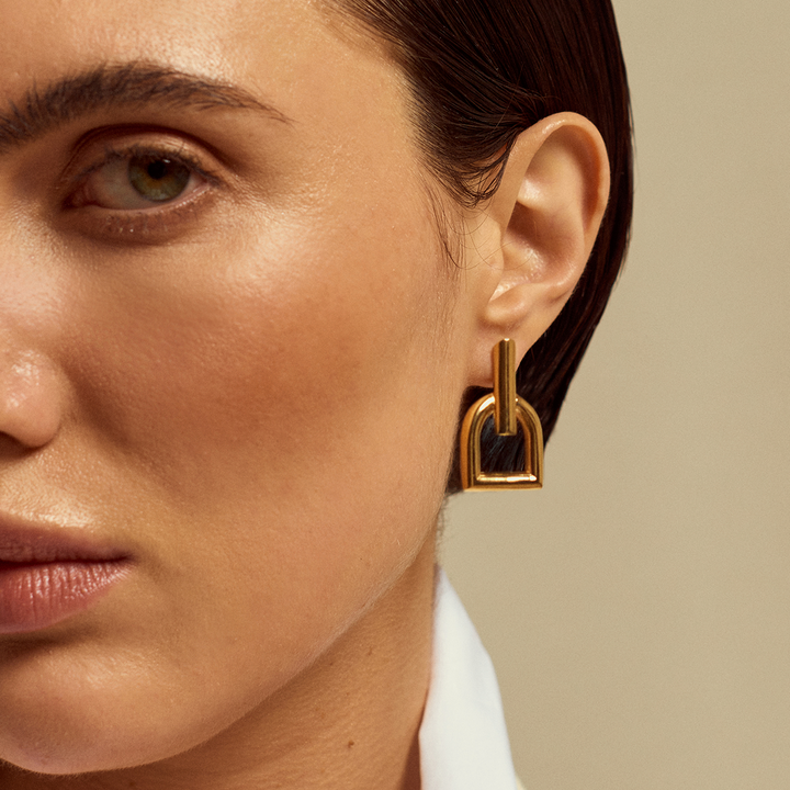 Pendientes bañados en Oro. Largo desde el agujero a la base 2,3 cm. Peso: 6,8 gr.