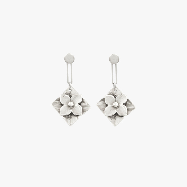 Pendientes colgantes tejidos bañados en Plata. Diseño exclusivo de CXC, elaborado de manera artesanal en España.