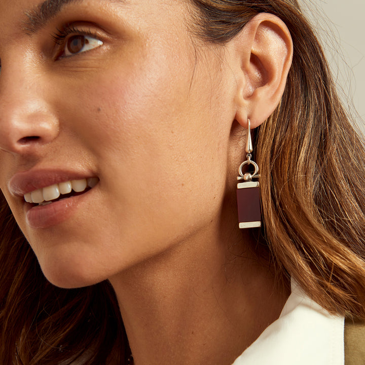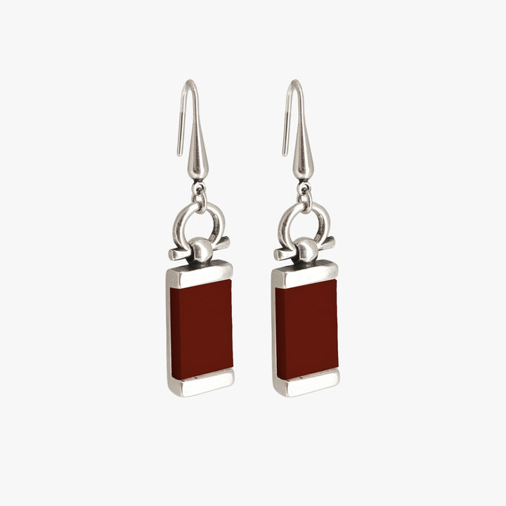 Pendientes bañados en Plata. Llevan incorporadas un par de placas de metacrilato burdeos. Peso 14.gr.