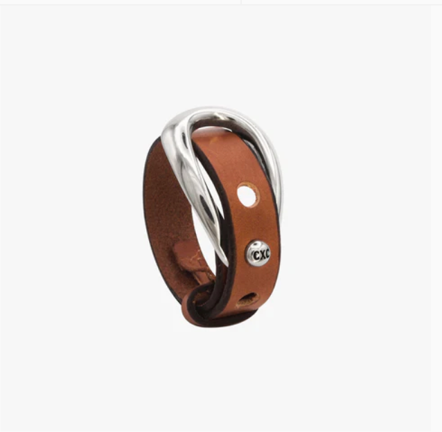 Materiales: Aleación de zinc y otros metales, cuero color camel, bañada en plata