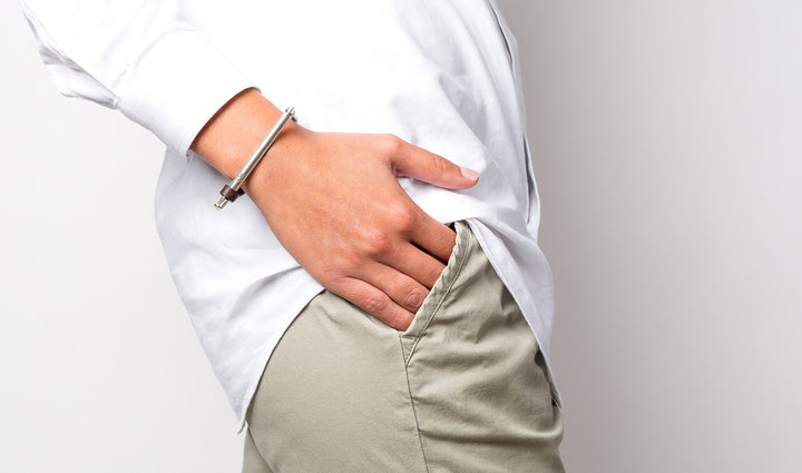 Pulsera bañada en plata con toque de cuero camel.