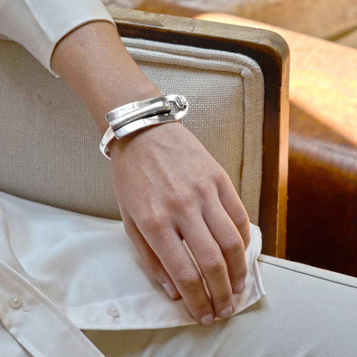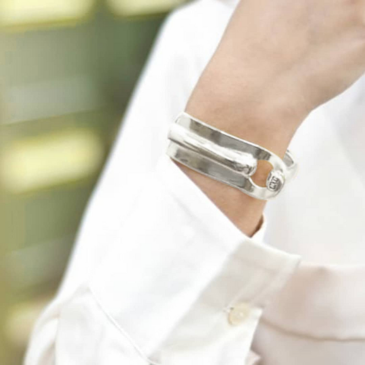 Pulsera bañada en plata. Perímetro ajustable en dos puntos para una muñeca de 15 a 16 cm.