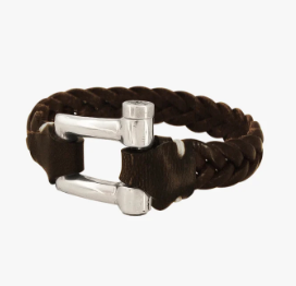 Pulsera con piel trenzada en color marrón de 10 mm de ancho. Cierre bañado en plata.