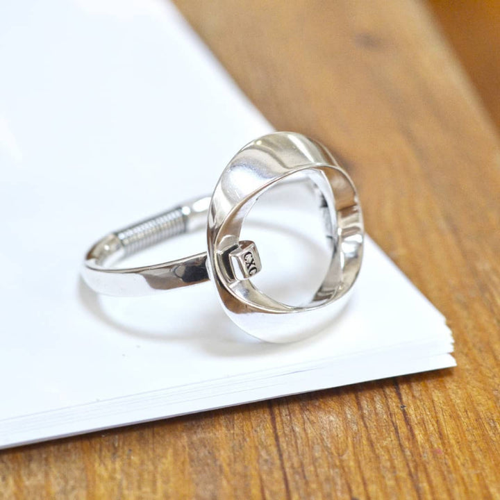 Uno de los diseños favoritos de la firma es esta original pulsera. El modelo está bañado en plata.