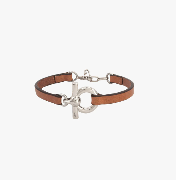 Materiales: Aleación de zinc y otros metales, cuero color camel, bañada en plata